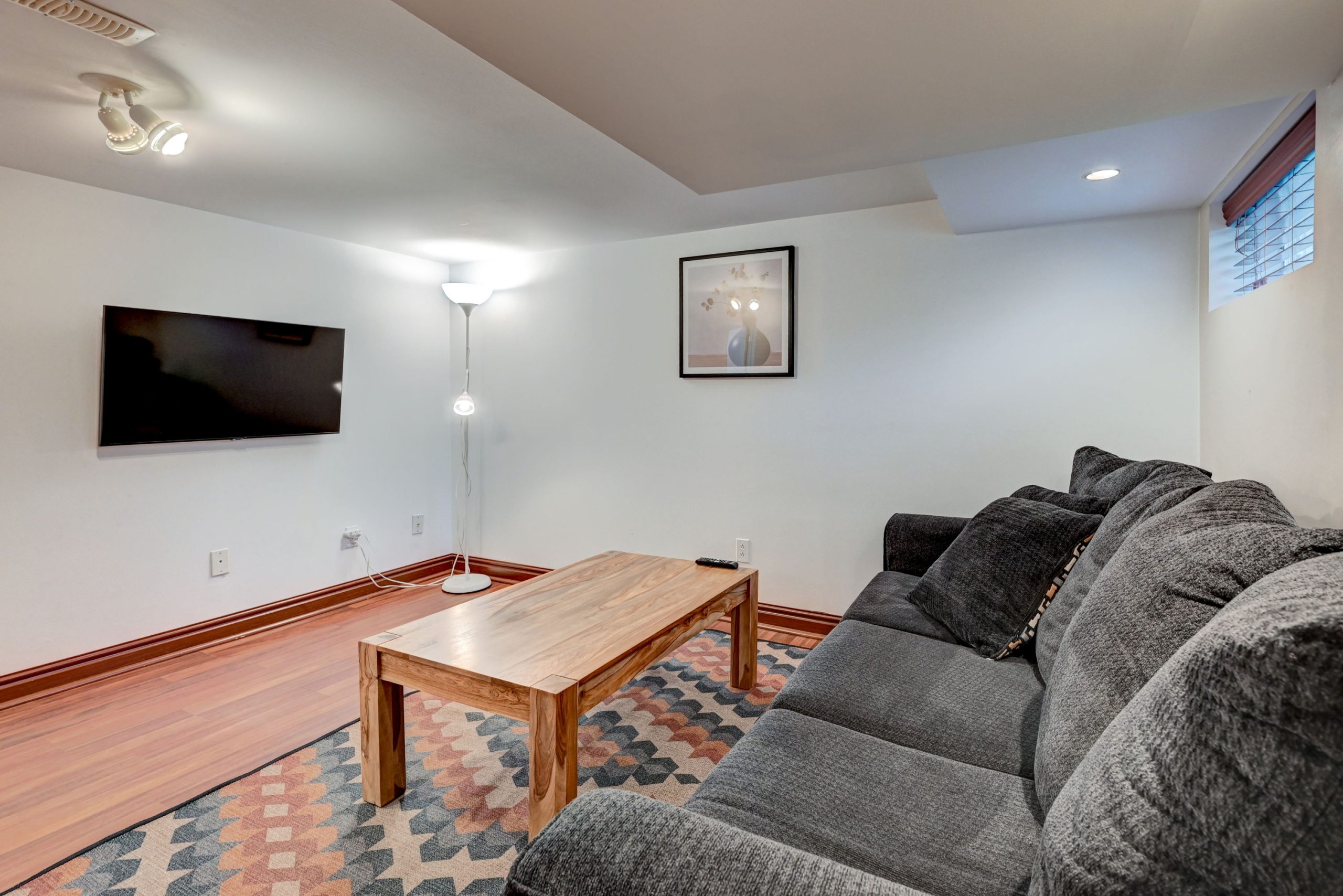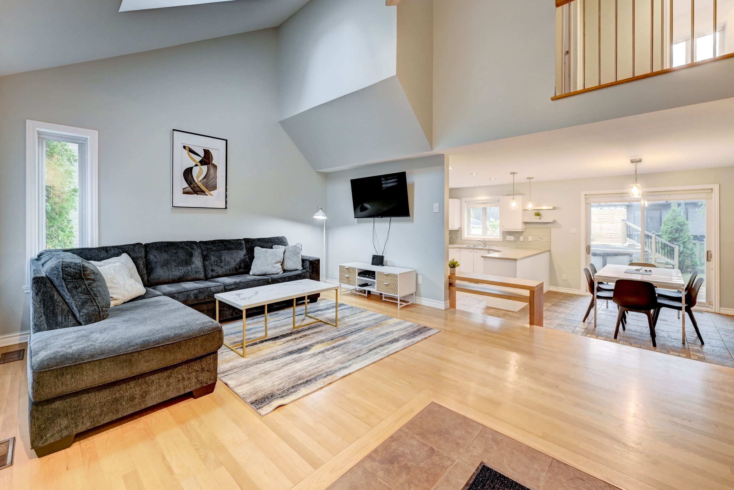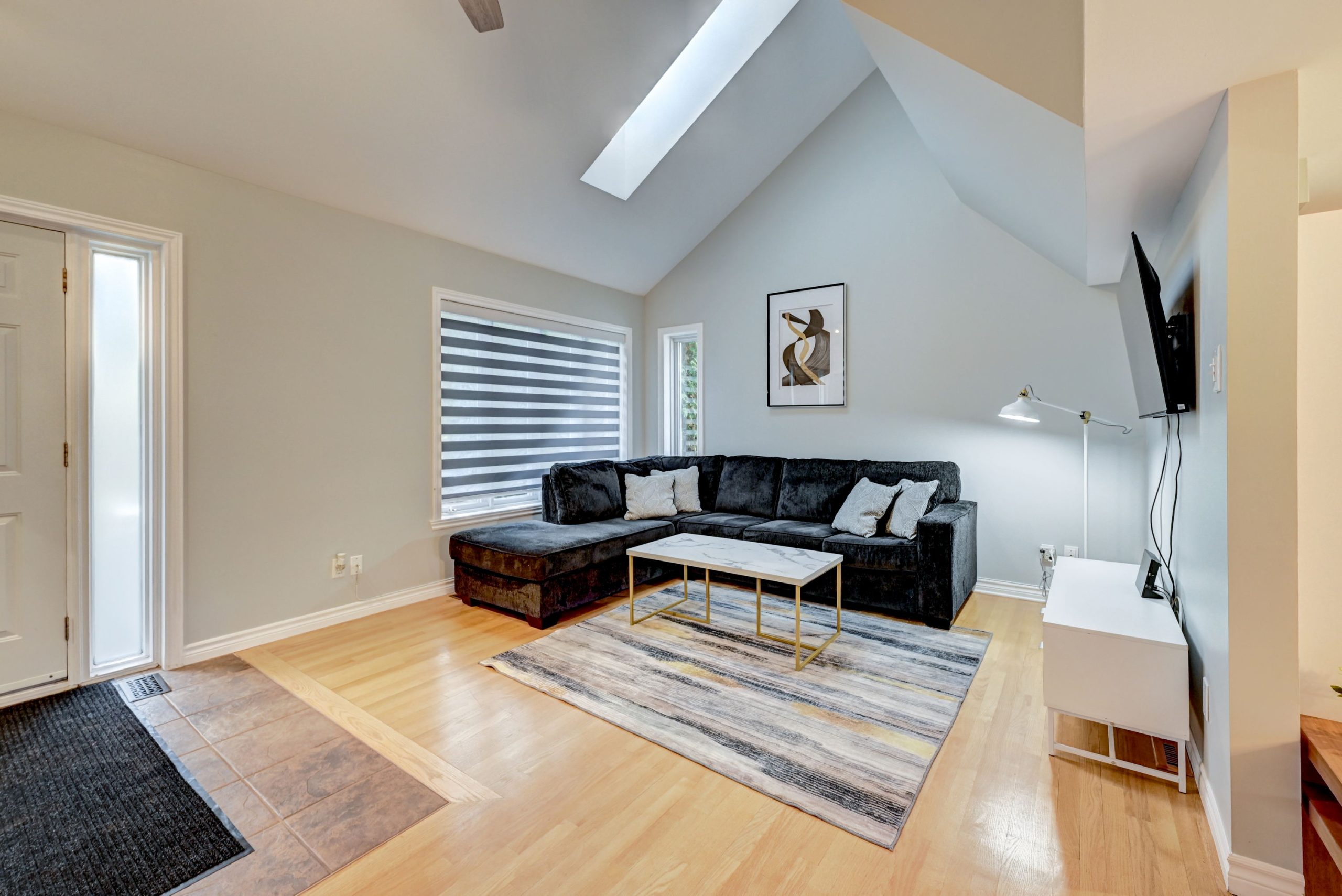 La maison dispose d’un rez-de-chaussée à aire ouverte, comprenant un salon lumineux, une cuisine moderne entièrement équipée et une salle à manger conviviale. À l’étage, vous trouverez trois chambres : une avec un lit king, une autre avec un lit double et la troisième avec un lit simple. Le sous-sol comprend une quatrième chambre avec un lit double, ainsi qu’un deuxième salon, idéal pour se détendre ou accueillir la famille.