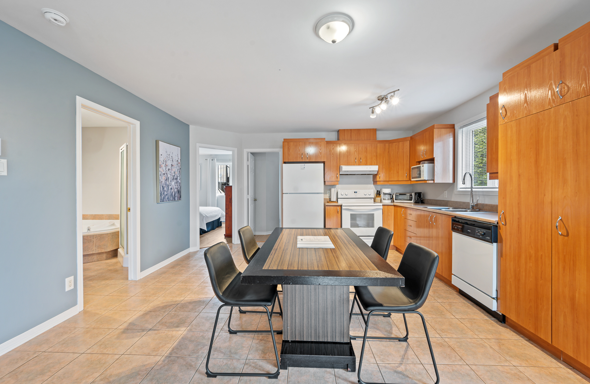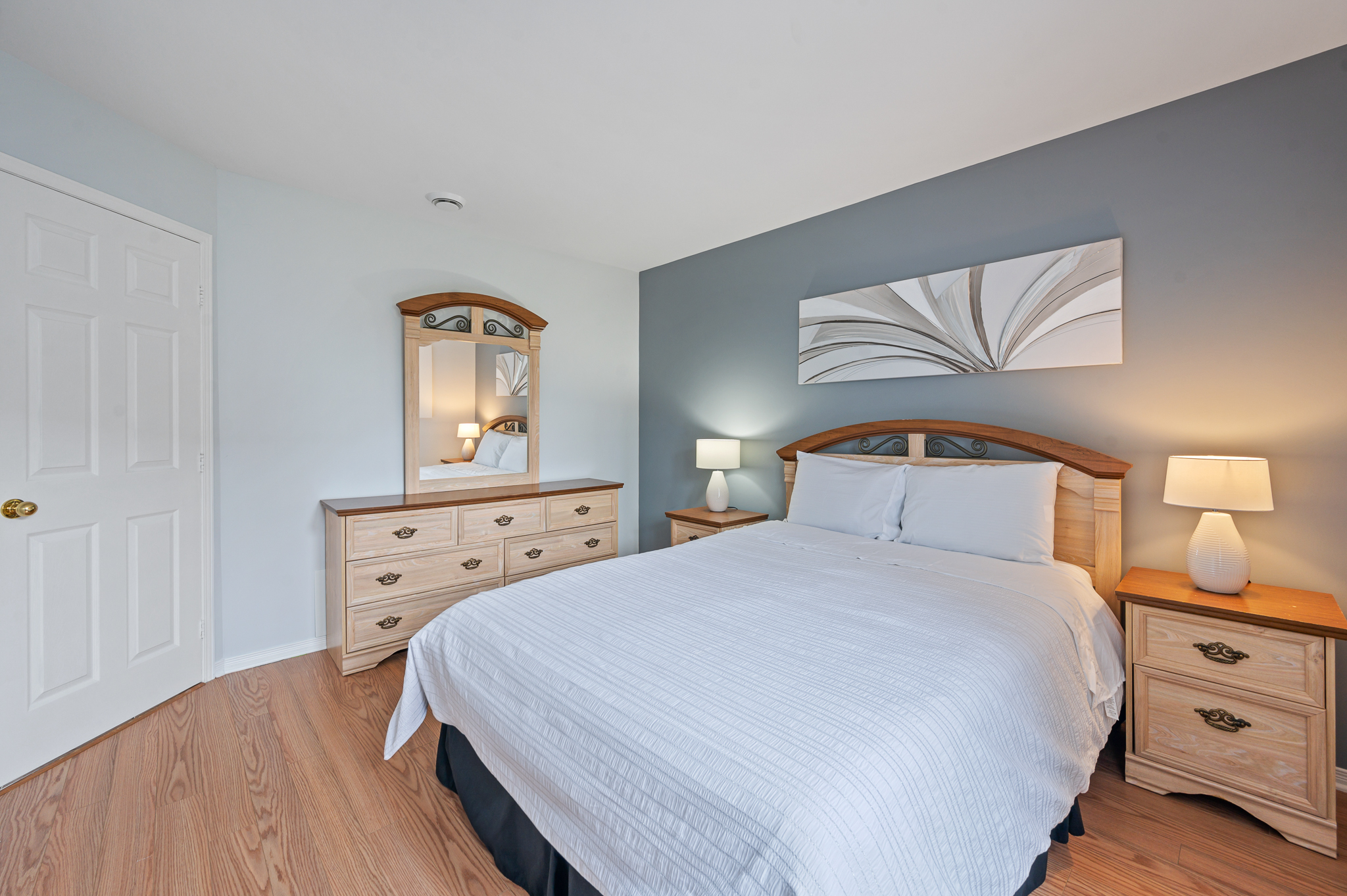 - Chambre principale : équipée d’un lit Queen, pour des nuits de détente et de repos.