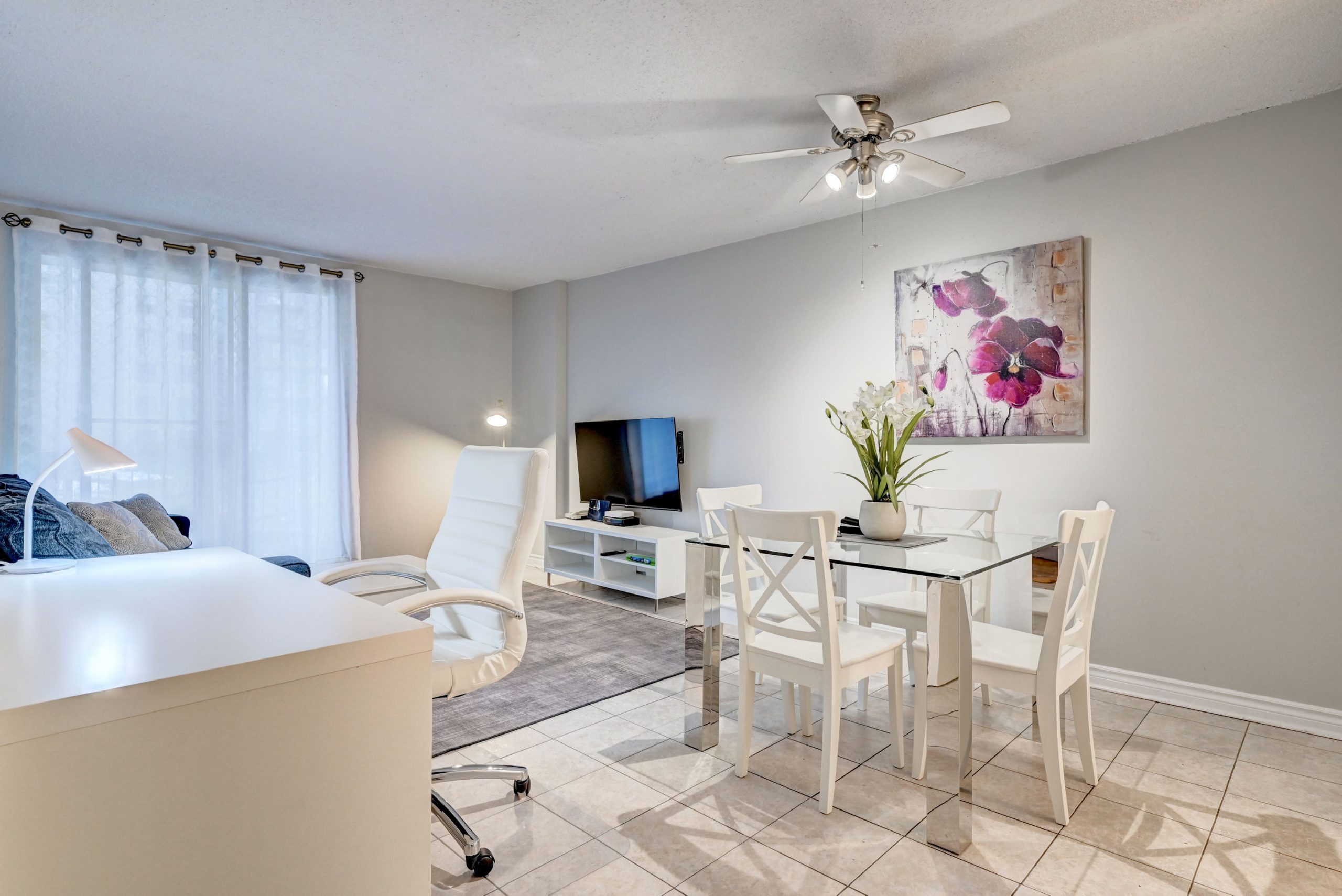 Située proche des Galeries d’Anjou, cette propriété avec balcon située au RDC , dispose d’une chambre. Elle a été aménagée pâr notre décoratrice de la manière suivante :