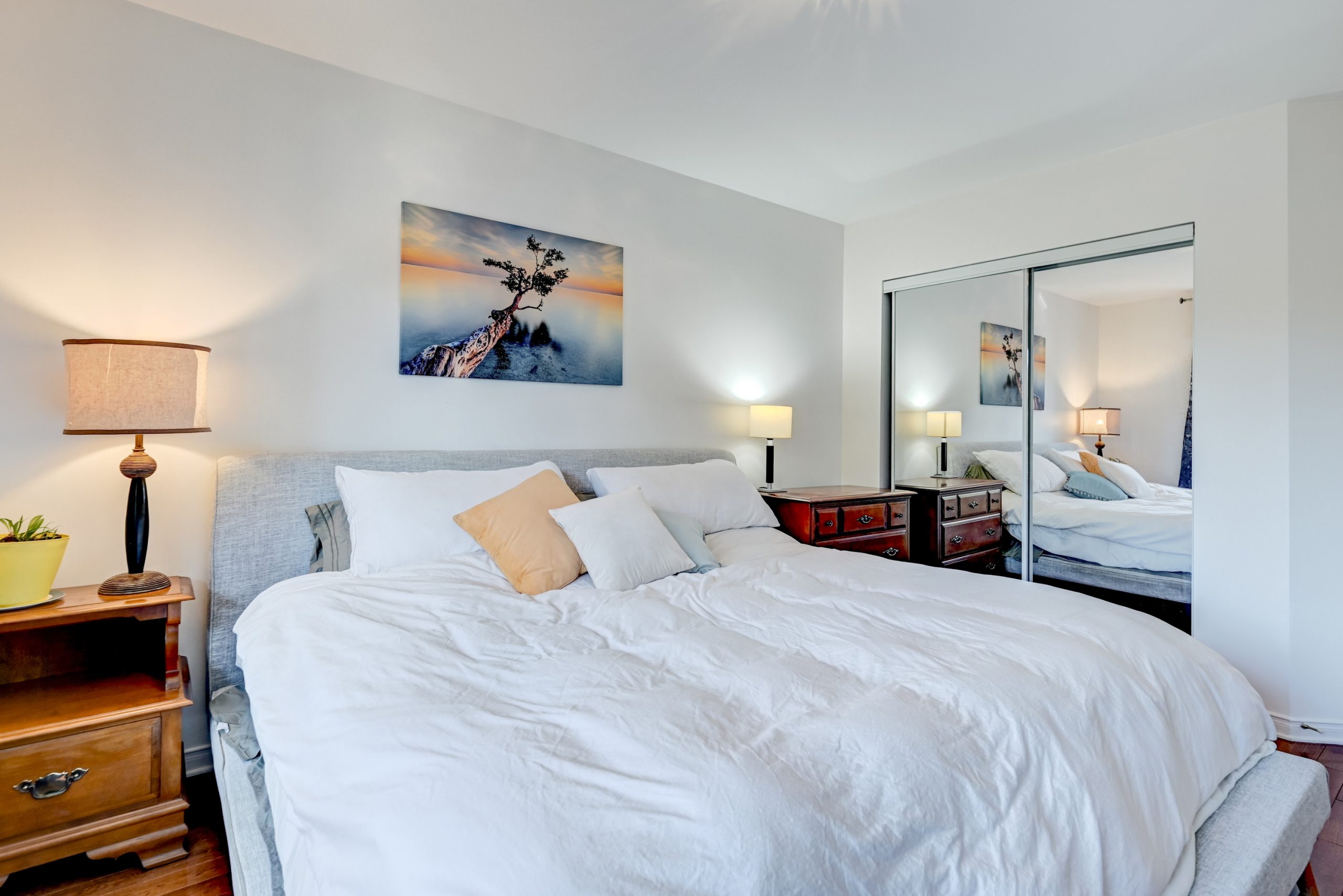 L’espace principal, baigné de lumière, vous accueille avec une chambre des maîtres spacieuse, dotée d’un lit king qui vous promet des nuits de détente.